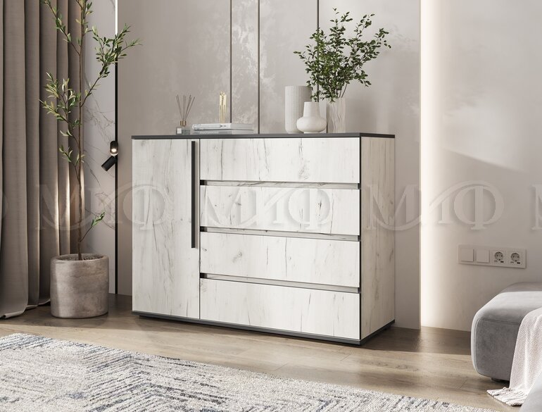 Комод 1 дверь 4 ящика (1200) Норд, крафт белый (Миф)