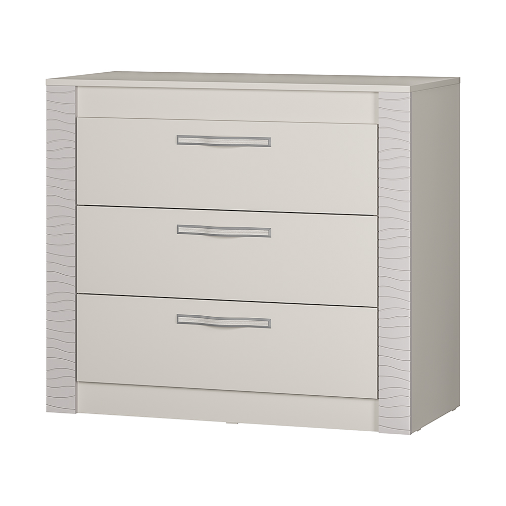 Комод "Монако" выполнен в сдержанном и элегантном стиле, как и все модели из одноименной мебельной коллекции. Изделие изготовлено в светлом цвете "кашемир" из качественной ЛДСП и имеет декоративные вставки из МДФ. Расположить все необходимые вещи можно в трех выдвижных ящиках, дополненных эргономичными ручками.