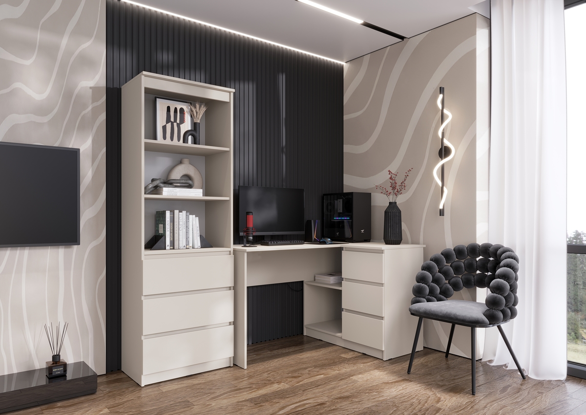 Письменный стол угловой + Стеллаж Челси кашемир (Миф)