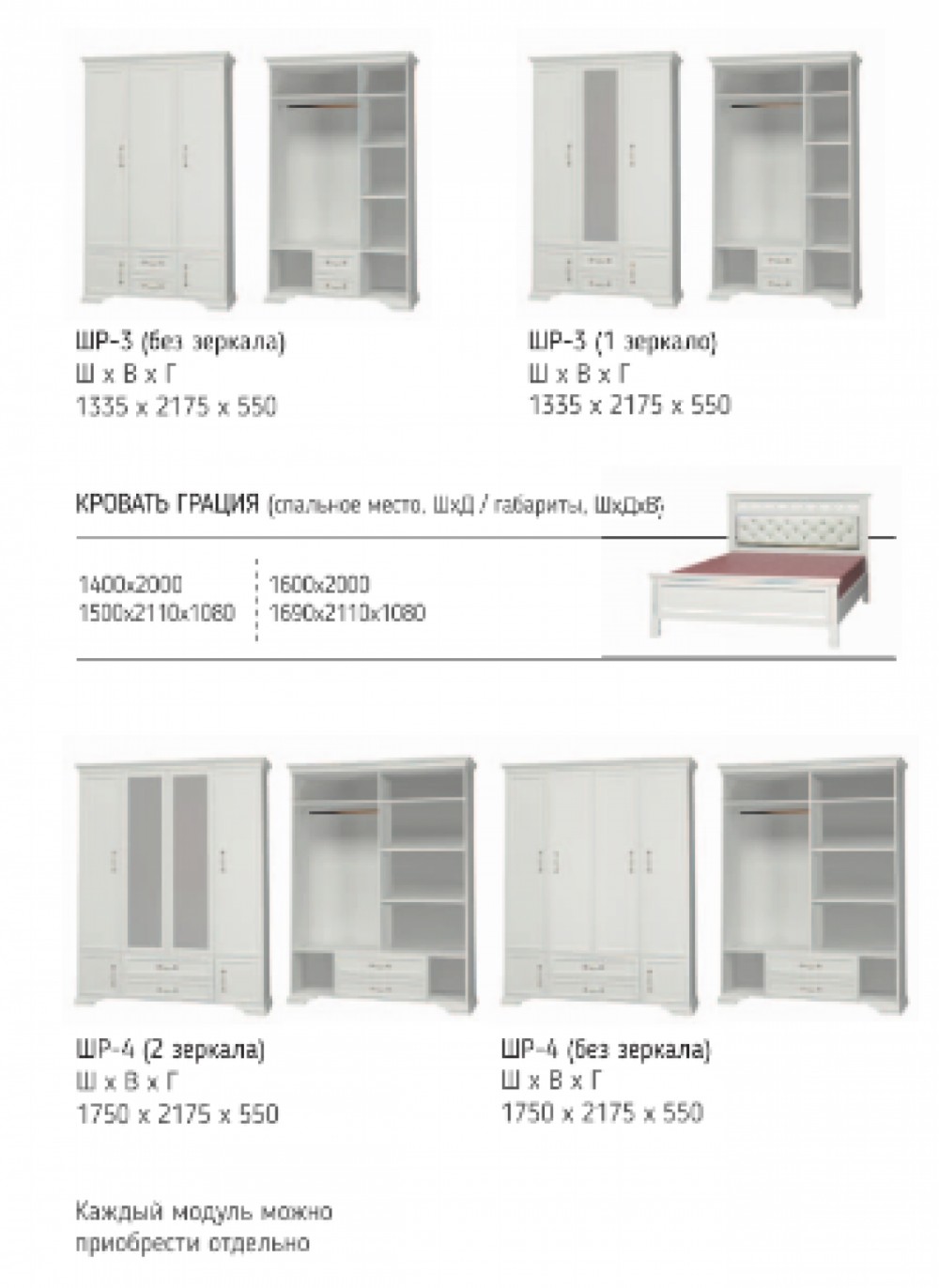 Артикул: A64706Шкаф 1700 мм ШР-4 без зерк.. ГРАЦИЯ (лак) Белый/Белый (БМ)