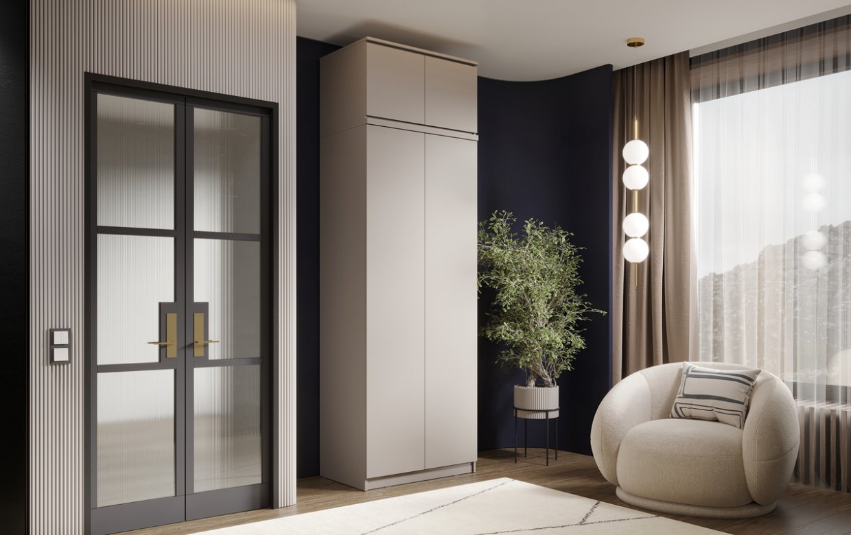 Шкаф 800 мм Челси двустворчатый с антресолью Кашемир (Миф)