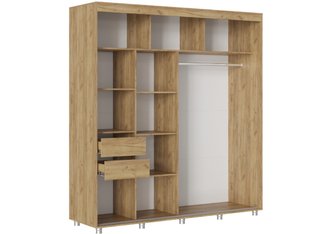 Габаритные размеры всего изделия – Д.2000 x В.2172 x Г.598 мм., внутренняя, полезная глубина составляет 490мм., что даёт возможность вешать одежду в полную глубину.