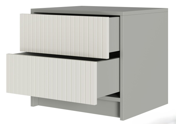 Компактная прикроватная тумба с двумя ящиками без ручек.